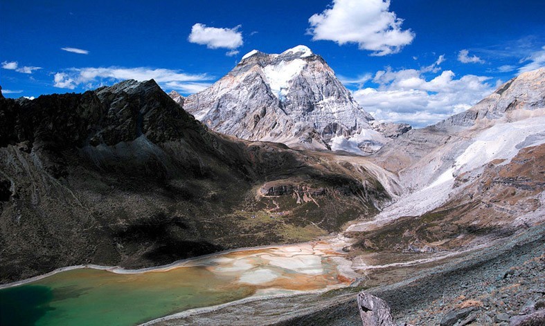 从四川木里水洛乡徒步至亚丁这条线被称作洛克线,是众多徒步爱好者热衷垂涎的一条线路,它深入穿行在香格里拉山区腹地,可近距离接触央迈勇、仙乃日、夏洛多吉三座神山。沿途还能领略河谷、草甸、垭口、海子、雪山、原始森林、高原牧场等世所罕见的腹地景色。