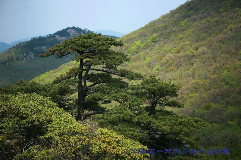 12:00龙王山顶返回下包处、上包沿防火线向下进发,14:00翻过牛屎坡至第三尖药王峰顶。