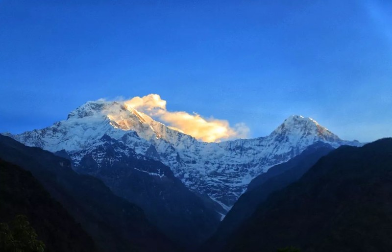 D6:DEURALI——ABC(4130米)我们穿过河床抵达山脉的另一边,在鱼尾峰大本营(MBC,3700米)午餐,从这里可以看到一系列山峰包括辛楚力峰、安娜普尔纳南峰、安娜普尔纳1峰、安娜普尔纳3峰、鱼尾峰、冈嘎普尔纳峰。餐后前往本次行山最高处安娜普尔纳峰大本营(Annapurna Base Camp,海拔:4130米),在这里你将感受到令人震撼的360度雪山全景。徒步5-6小时。