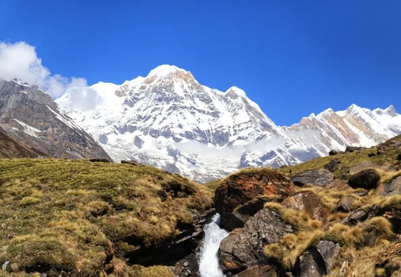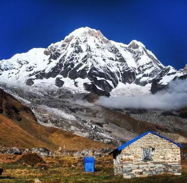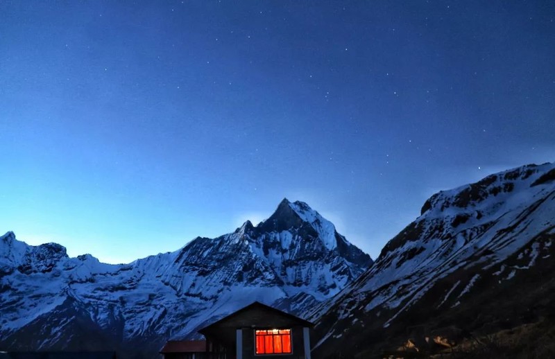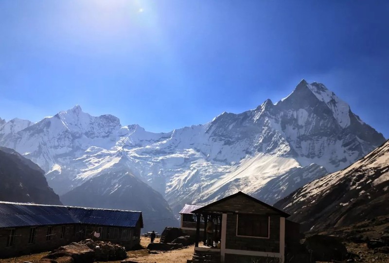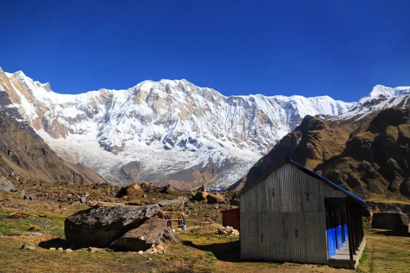 我们穿过河床抵达山脉的另一边,在鱼尾峰大本营(MBC,3700米)午餐,从这里可以看到一系列山峰包括辛楚力峰、安娜普尔纳南峰、安娜普尔纳1峰、安娜普尔纳3峰、鱼尾峰、冈嘎普尔纳峰。餐后前往本次行山最高处安娜普尔纳峰大本营(Annapurna Base Camp,海拔:4130米),在这里你将感受到令人震撼的360度雪山全景。徒步5-6小时。