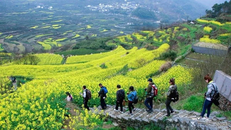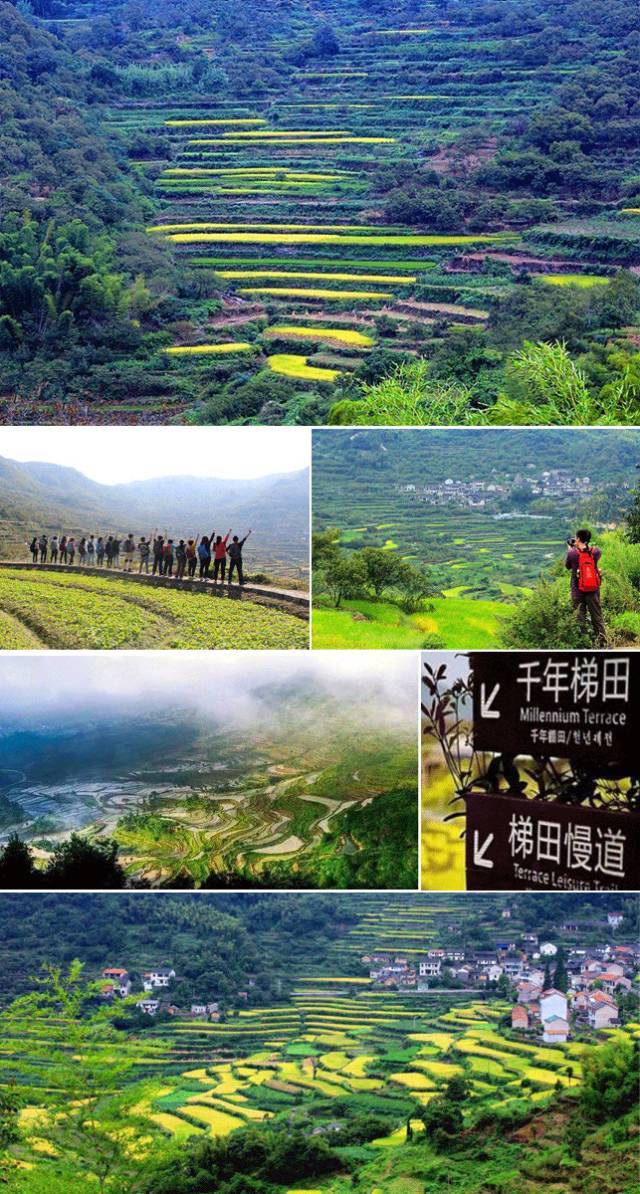 古村梯田--覆卮山下的古村,有大片大片的、不知建造于何年何月的古老梯田。村民们世世代代在这些梯田上耕作,现在已经成为覆卮山一大景观了。每当春天来临,油菜花开放了,梯田变得黄潺潺一片!
